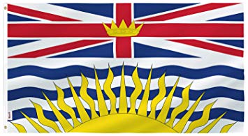 British Columbia 3'X6' Knitted Polyester flags, Heavy Duty Outdoor Flag and stiched 4 times arounf the edges. Comes with Grommets or Rope and Toggle
