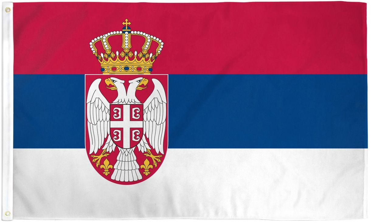 Serbia 4.5'X9' Knitted Polyester Flags, Heavy Duty Outdoor Flag, stitched 4 times around the edges, comes with Grommets