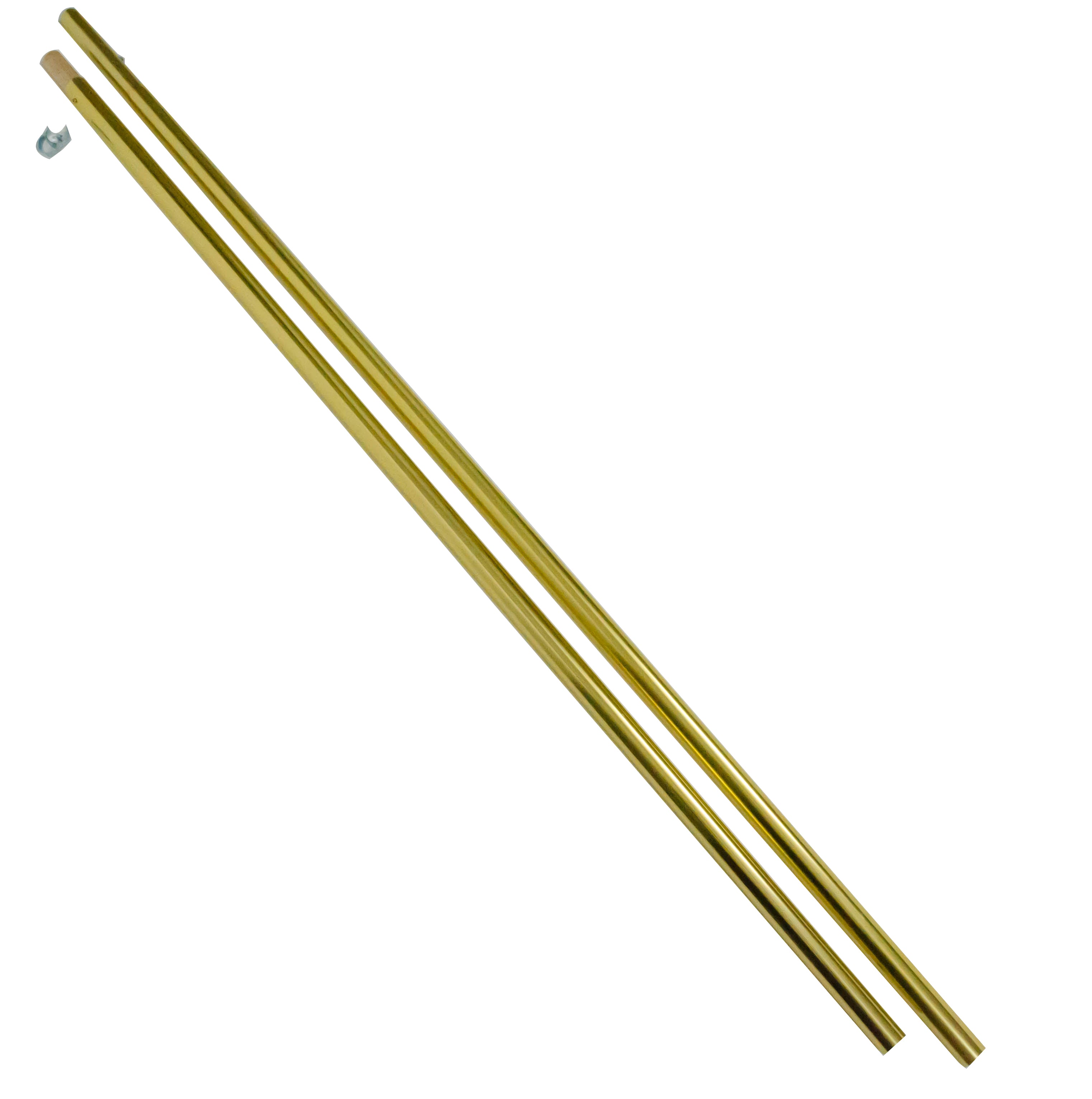 8' Aluminum Two Piece Flag Pole with Wood plug for Finial installation. Include C Clips for Flag attachment. 1" Diameter. Gold Colour