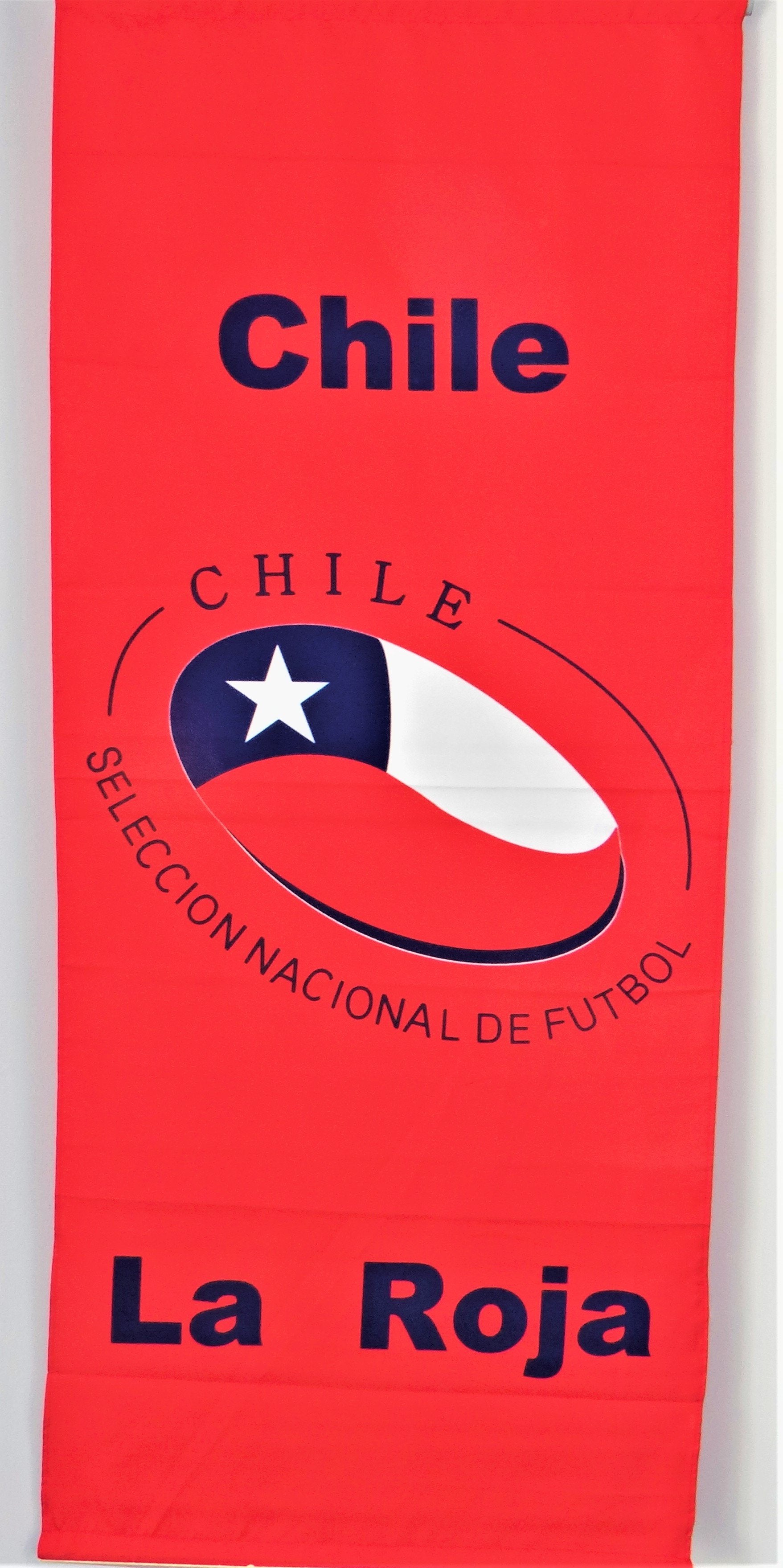 Chile Fifa style banner for wall decoration, includes an attached string for easy hanging.