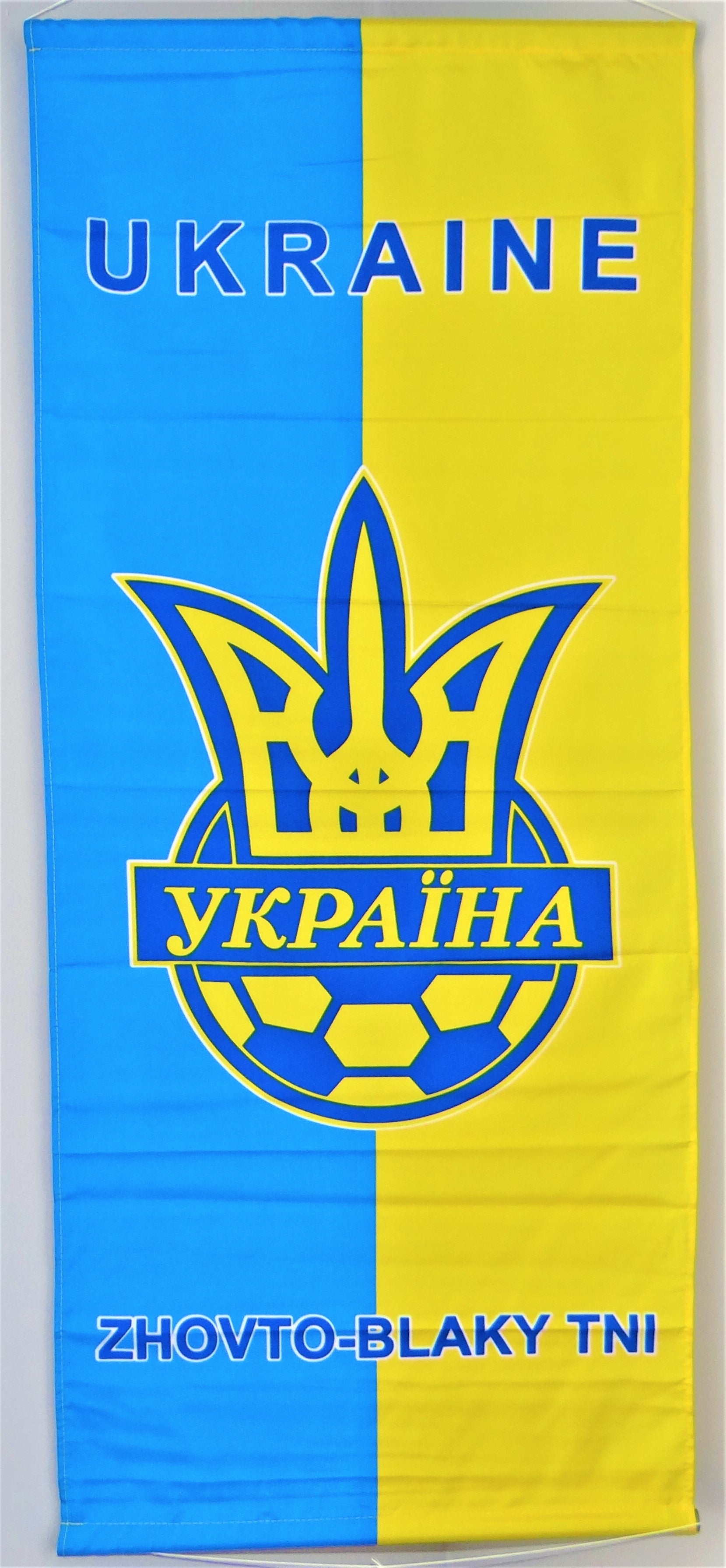 Ukraine Fifa style banner for wall decoration, includes an attached string for easy hanging.