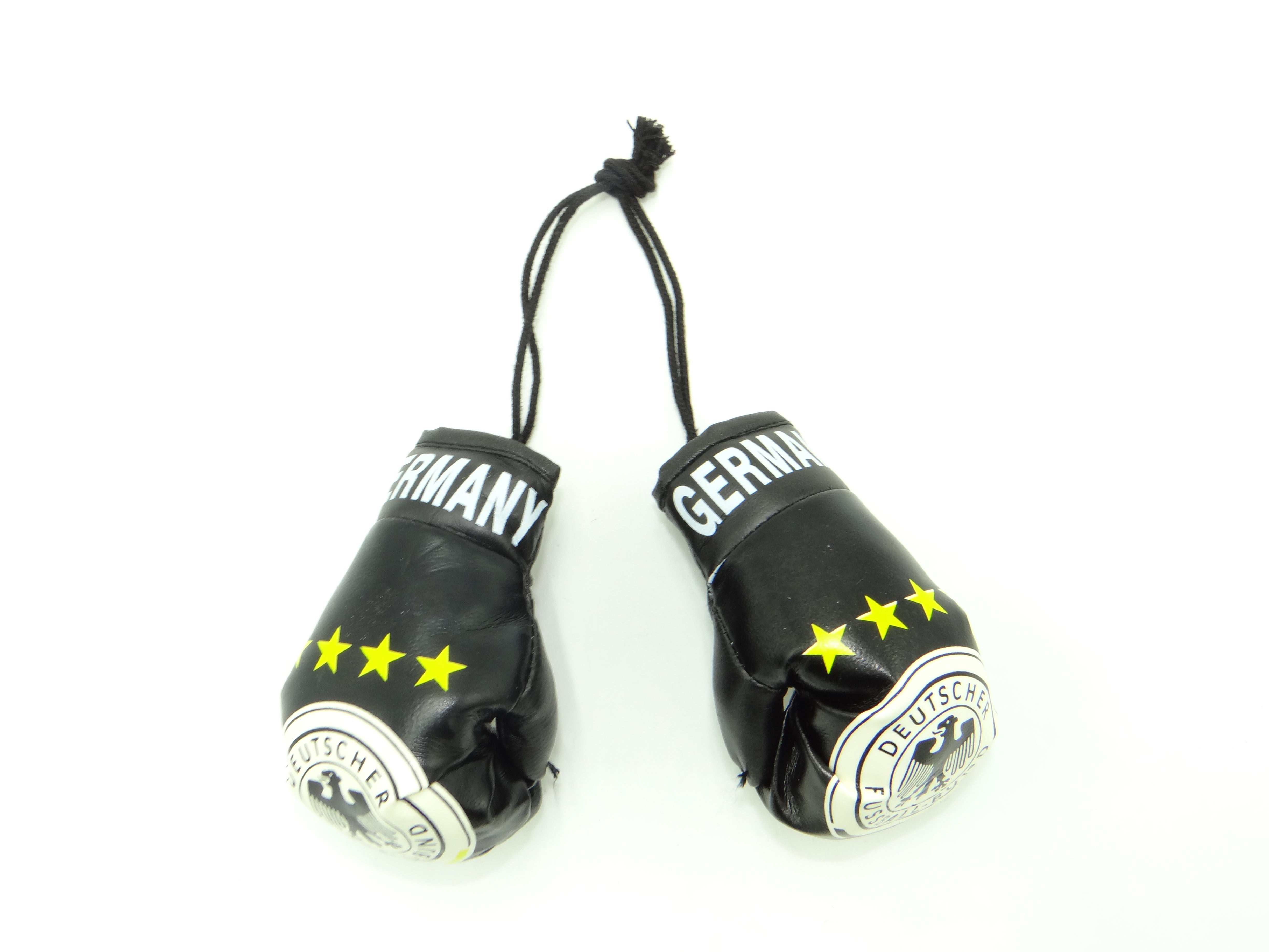 Mini flag boxing gloves for rear view mirror hanging. Sold in Packs of 6 pairs