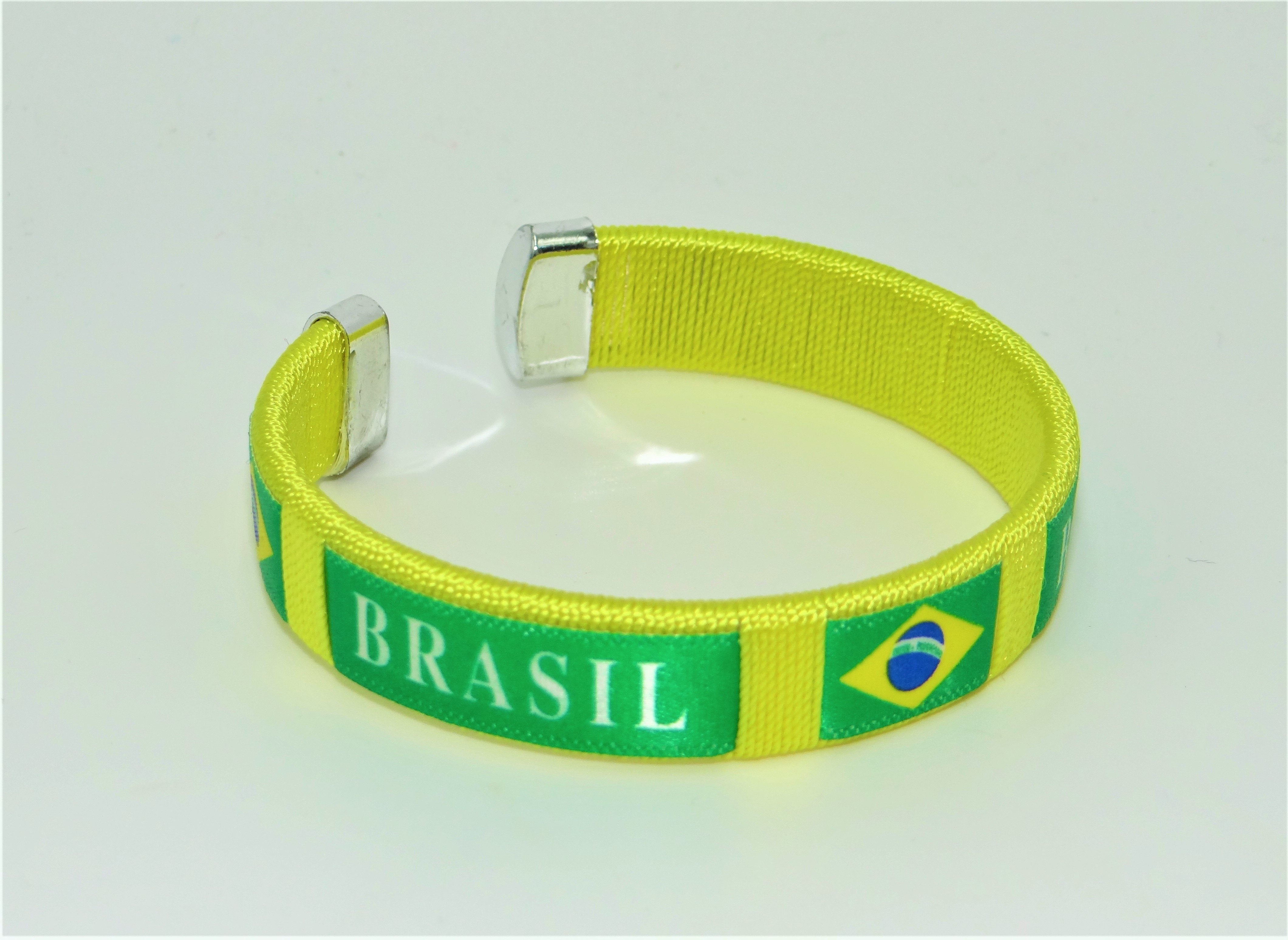 Brazil Country flag C' clip Bracelet Wristband. Sold by the dozen (pack of 12).