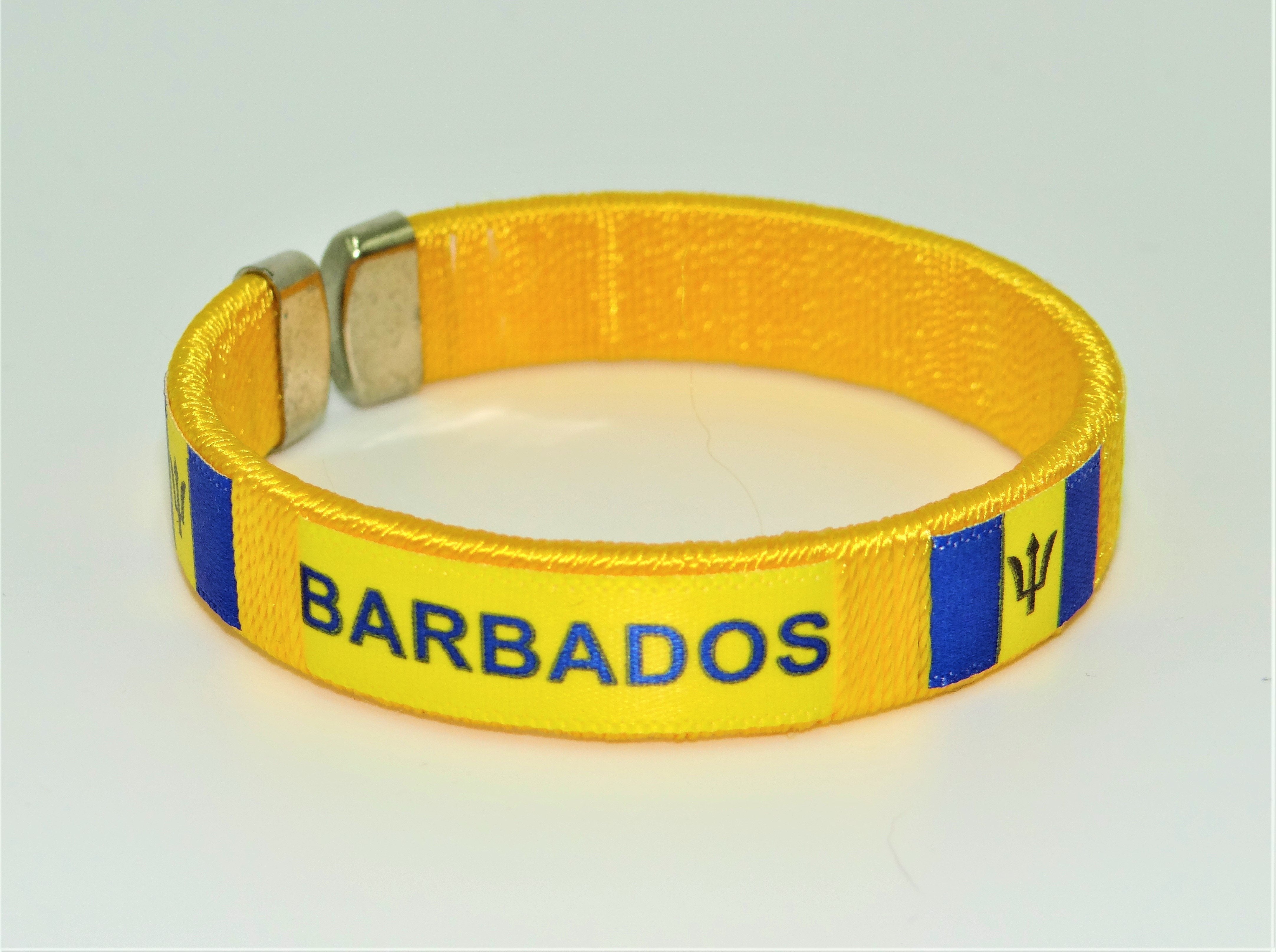 Barbados Country flag C' clip Bracelet Wristband. Sold by the dozen (pack of 12).