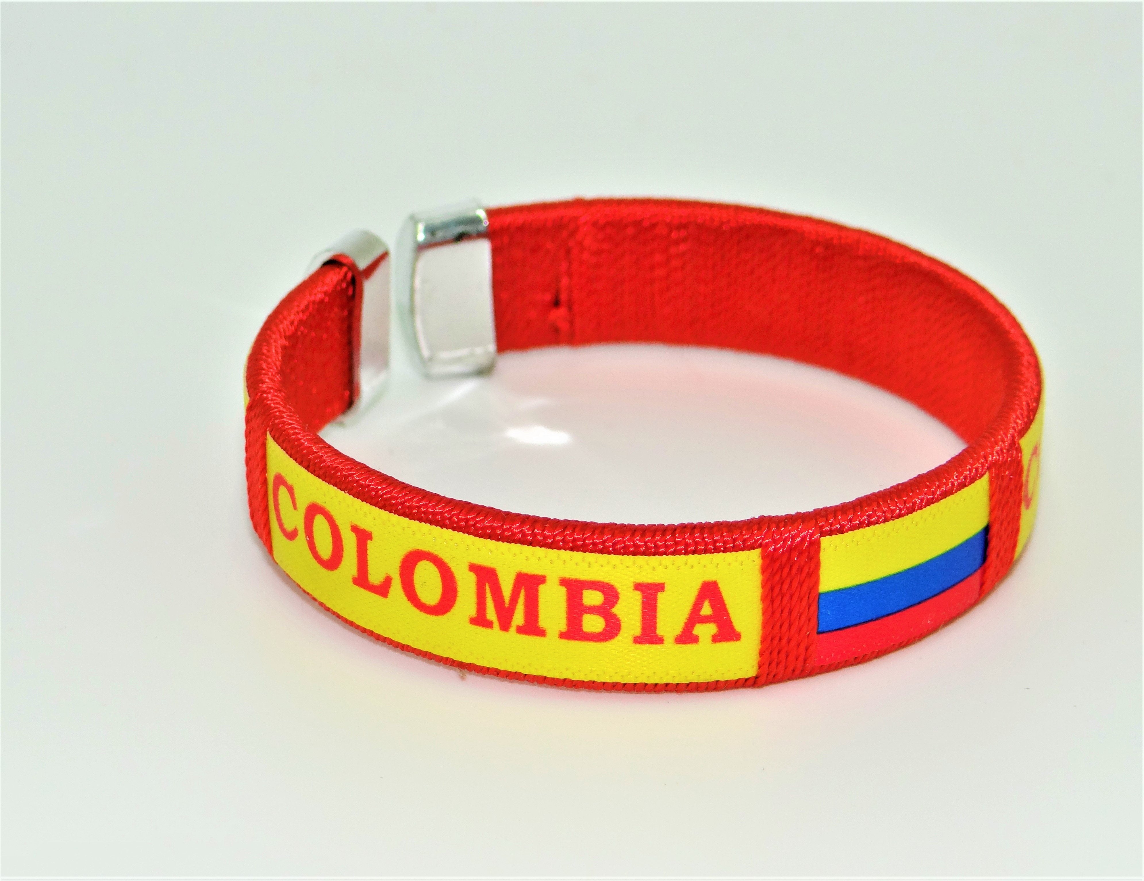 Colombia Country flag C' clip Bracelet Wristband. Sold by the dozen (pack of 12).
