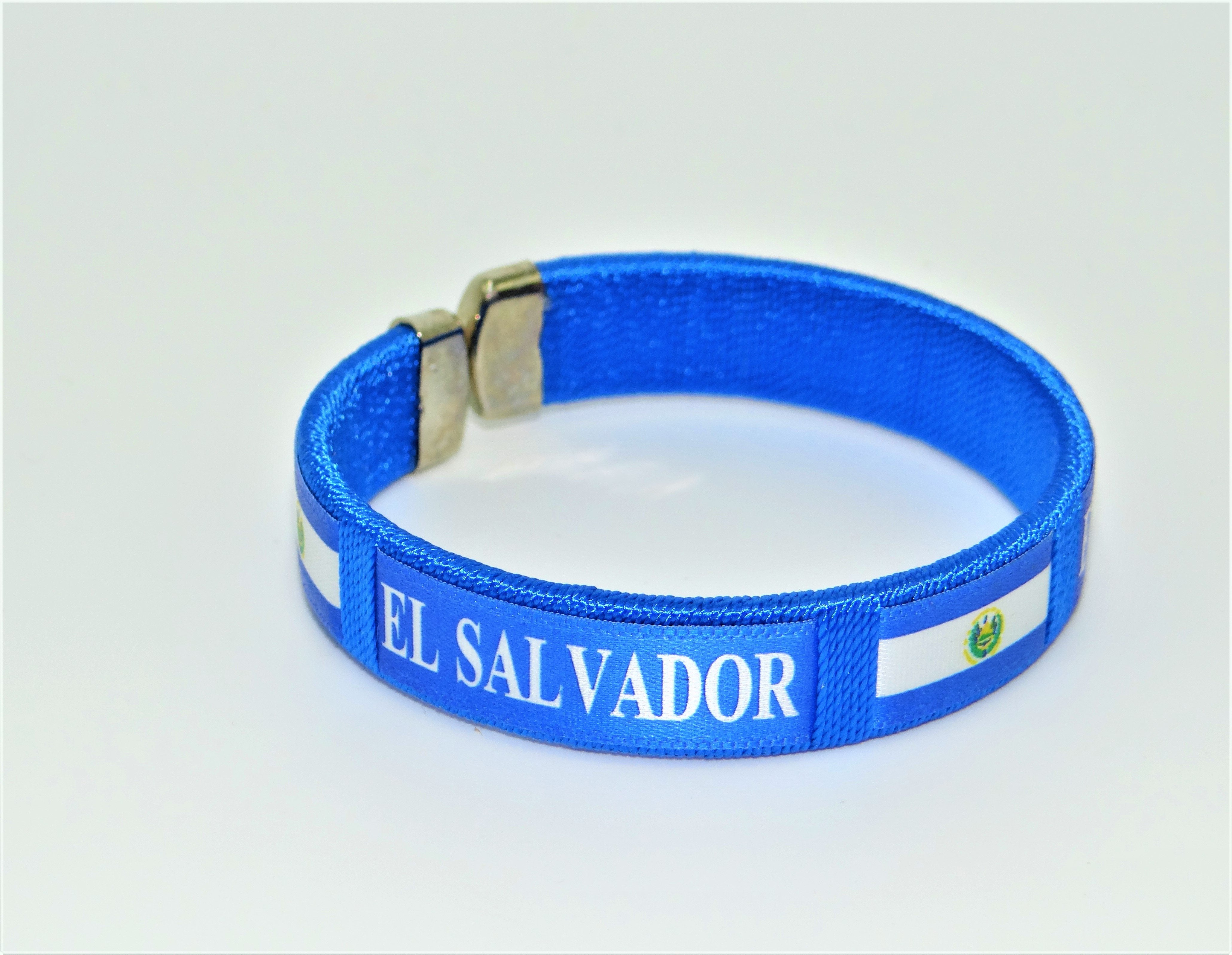 El-Salvador Country flag C' clip Bracelet Wristband. Sold by the dozen (pack of 12).