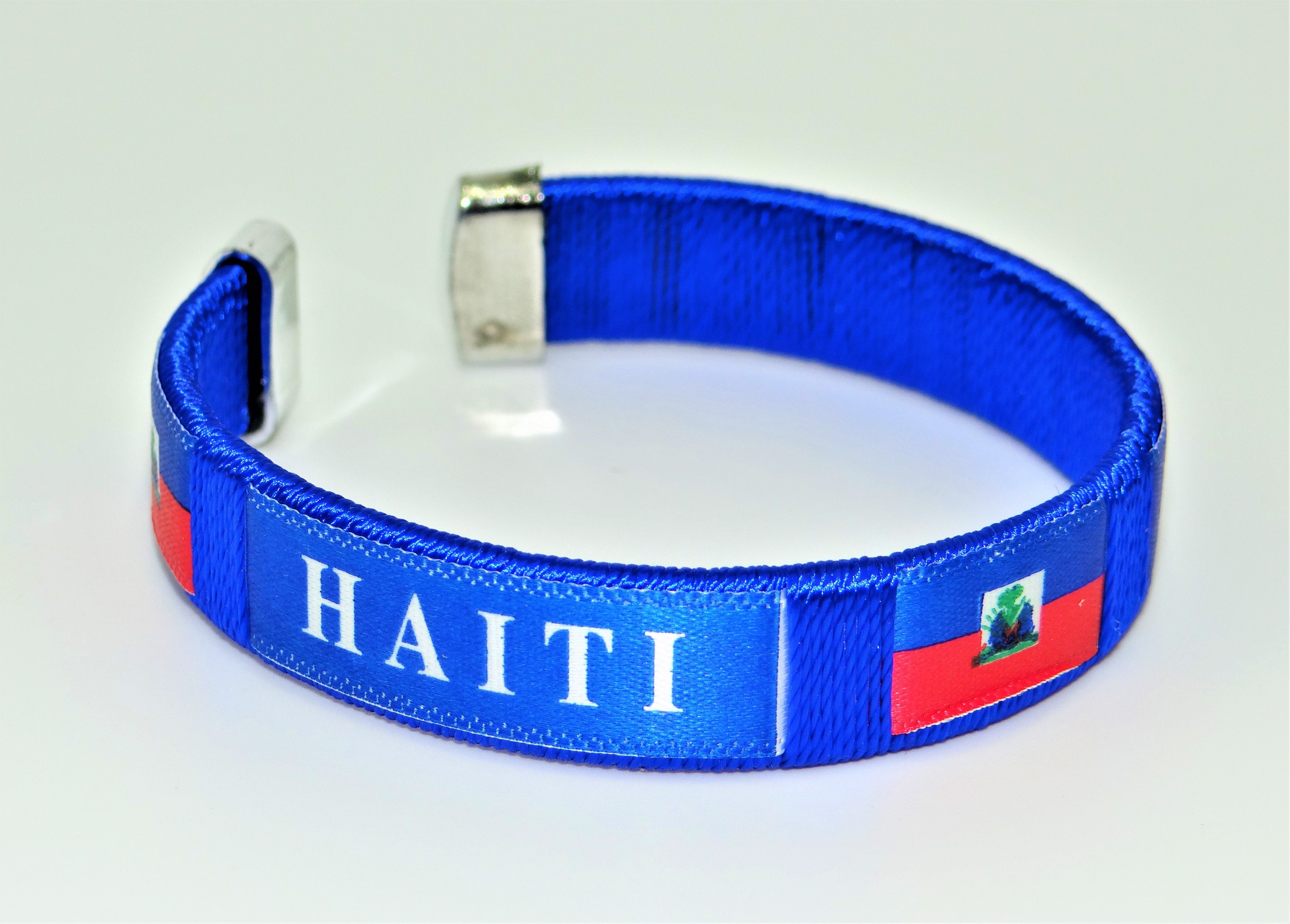 Haiti Country flag C' clip Bracelet Wristband. Sold by the dozen (pack of 12).