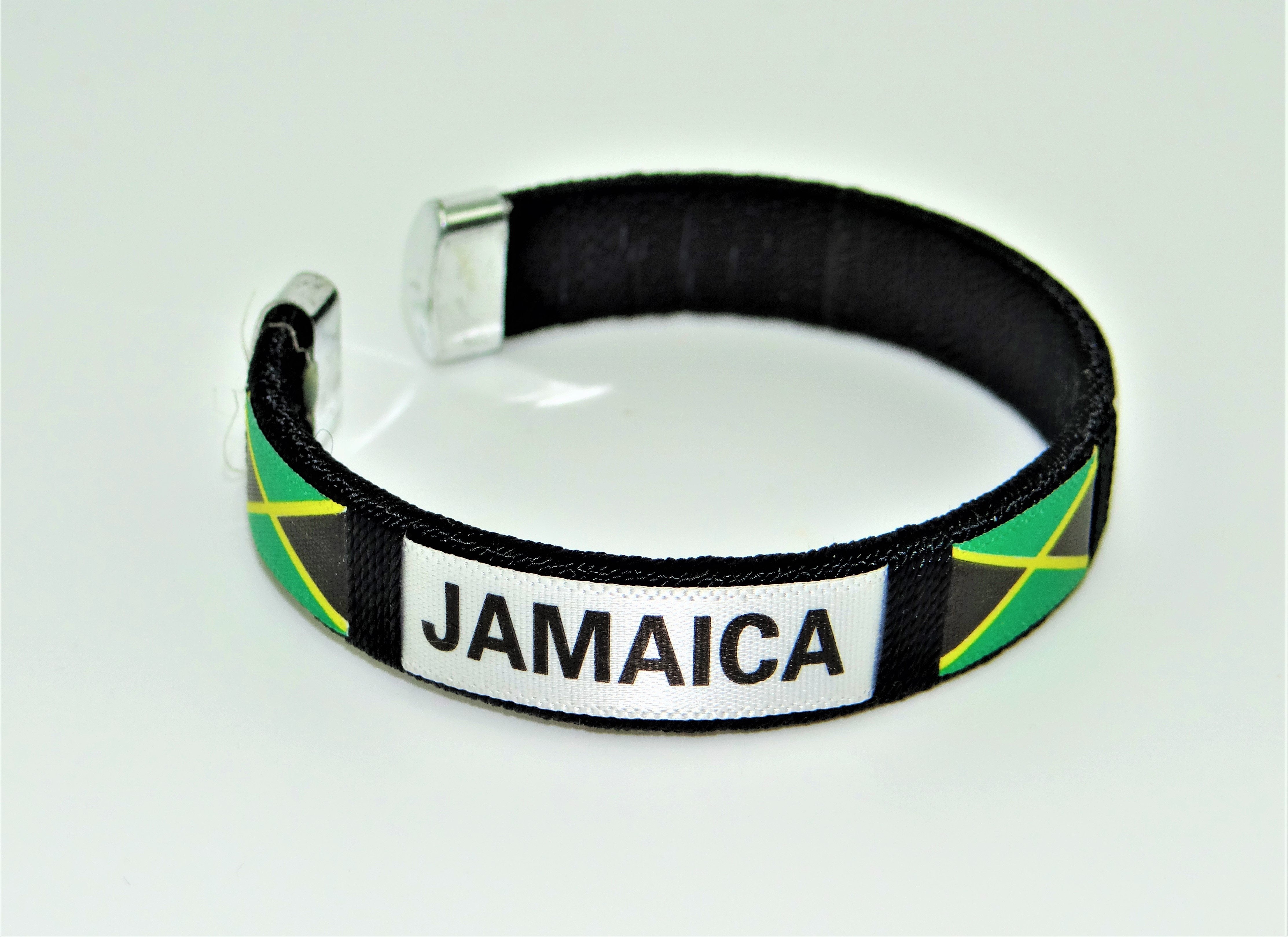 Jamaica Country flag C' clip Bracelet Wristband. Sold by the dozen (pack of 12).