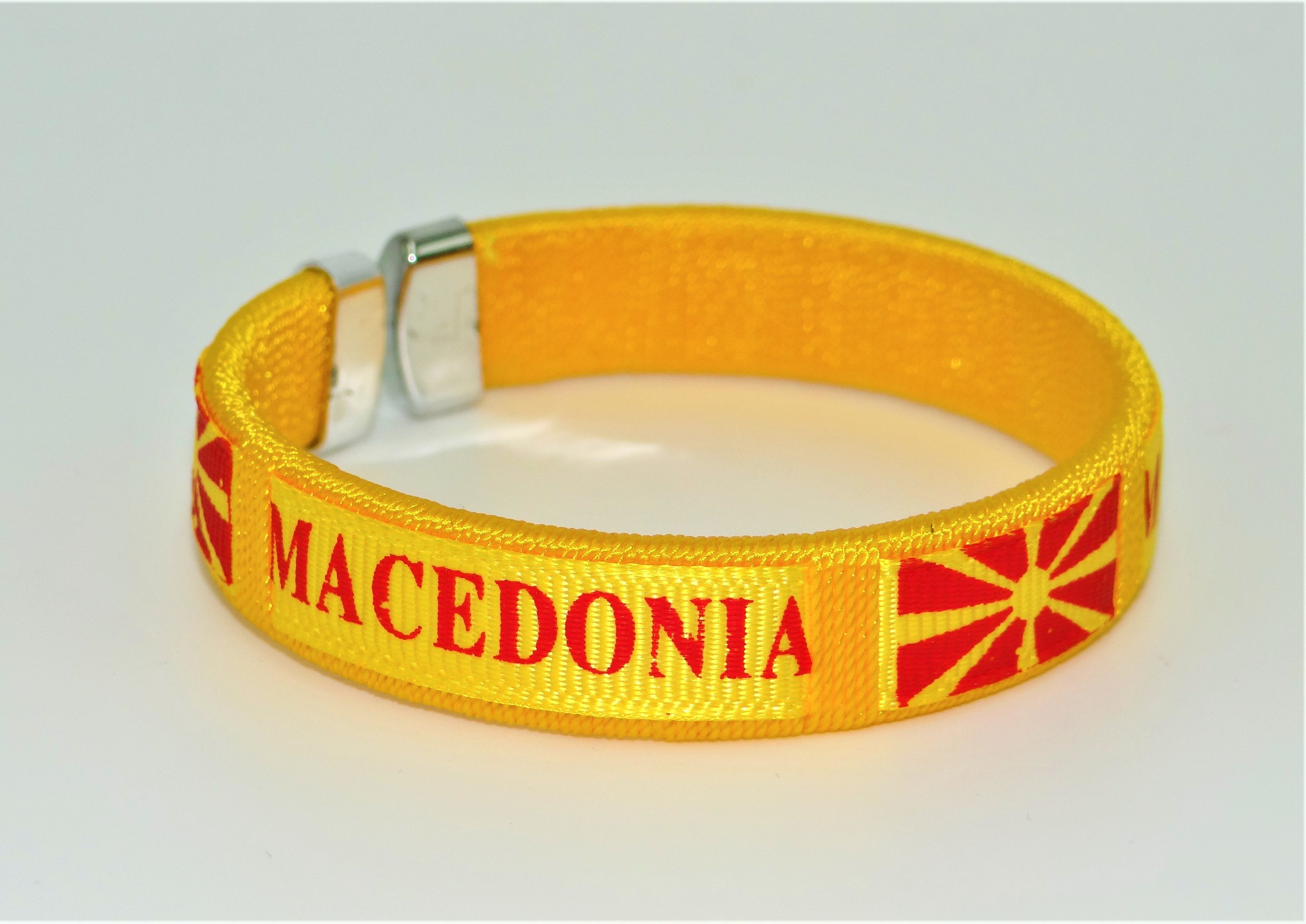 Madedonia Country flag C' clip Bracelet Wristband. Sold by the dozen (pack of 12).