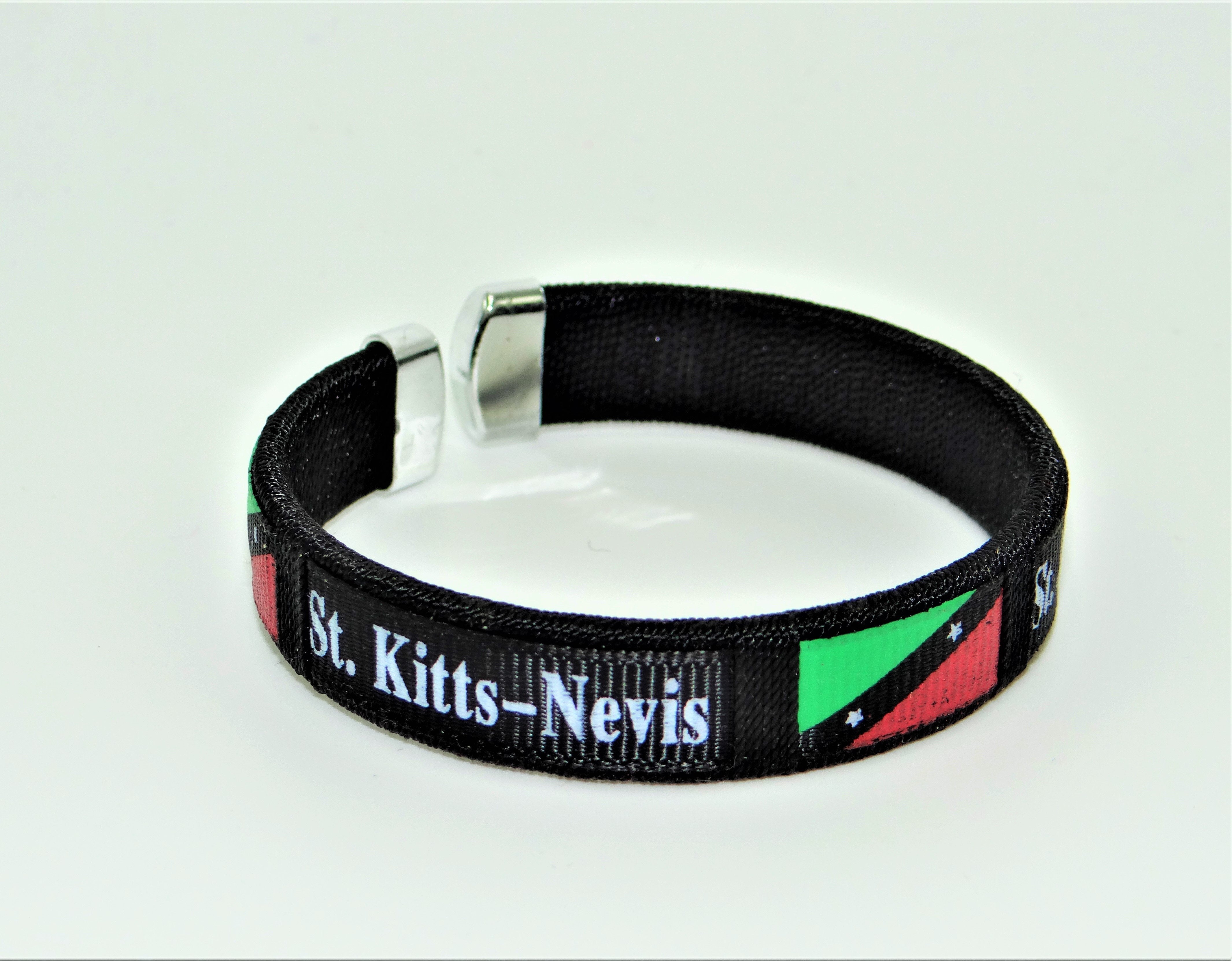 St. Kitts Country flag C' clip Bracelet Wristband. Sold by the dozen (pack of 12).