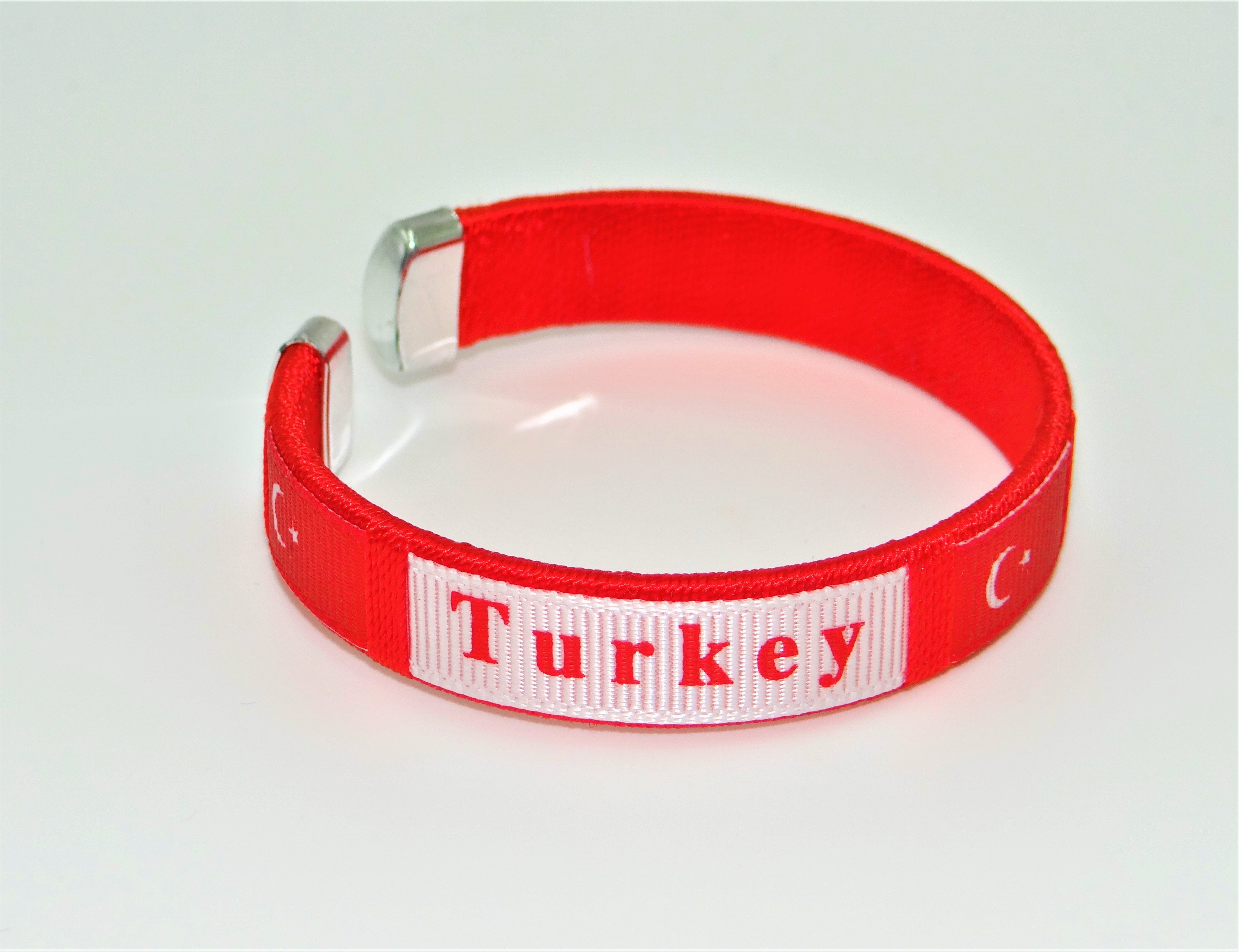 Turkey Country flag C' clip Bracelet Wristband. Sold by the dozen (pack of 12).