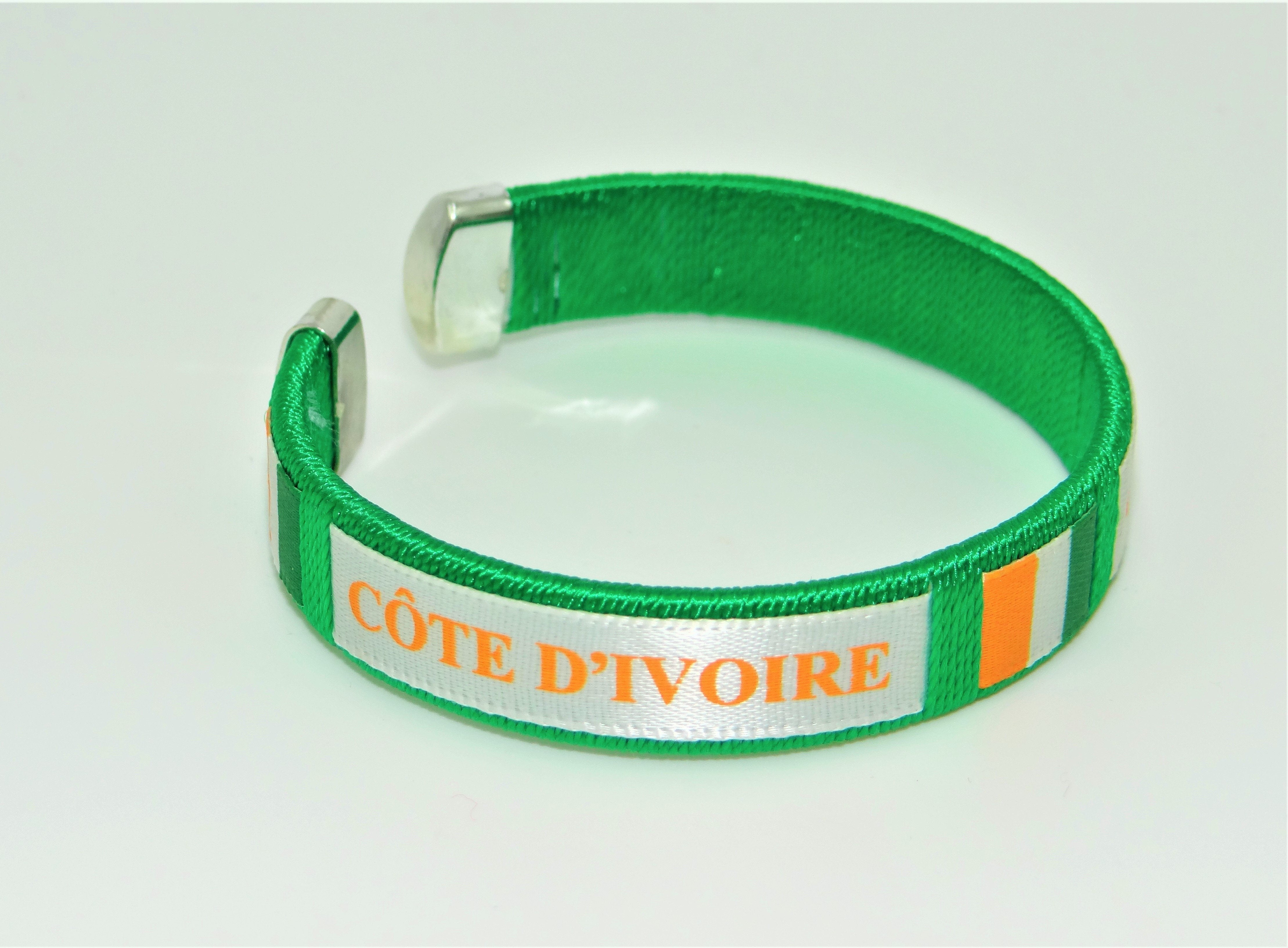 Ivory Coast Country flag C' clip Bracelet Wristband. Sold by the dozen (pack of 12).