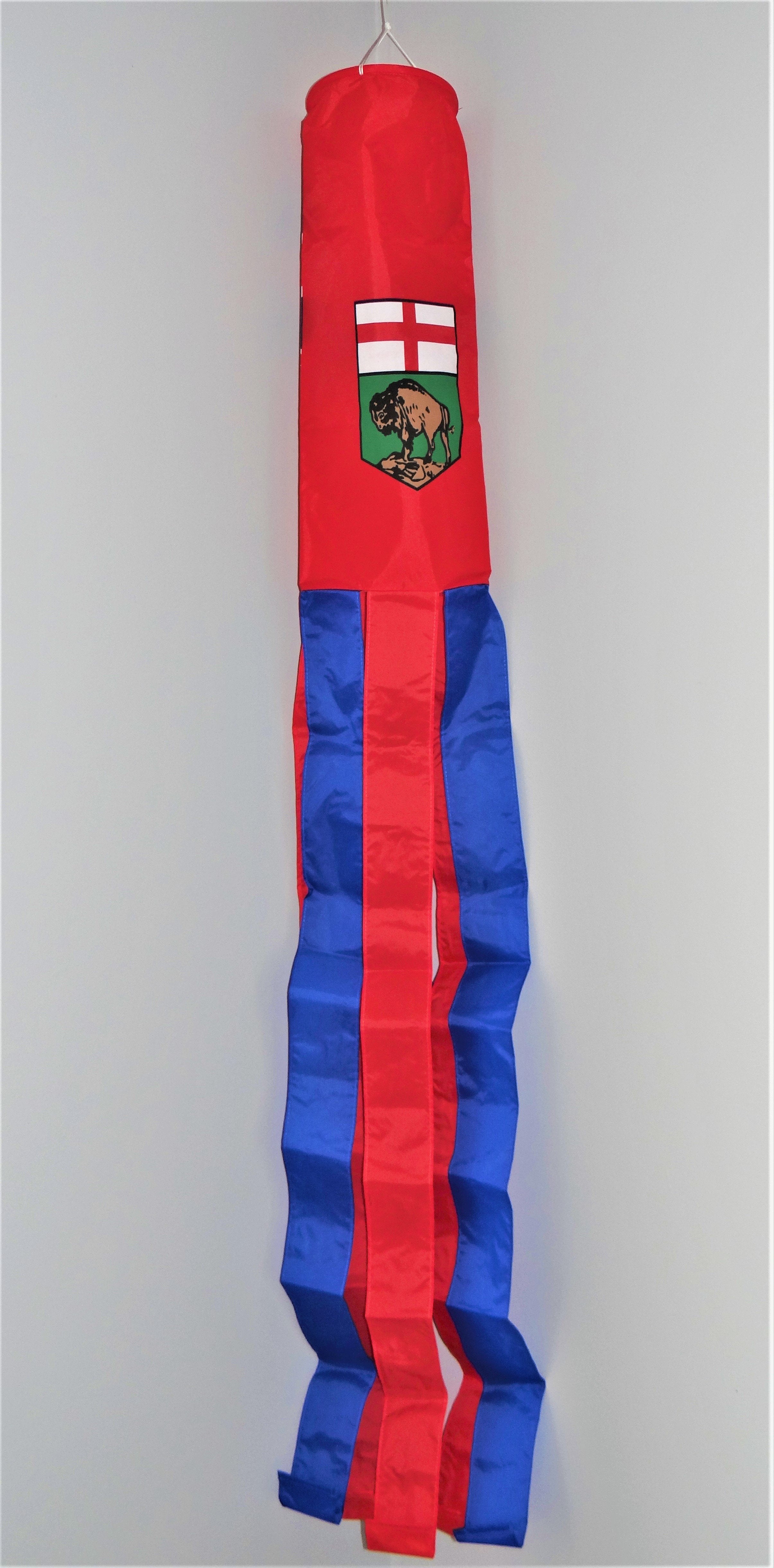 Manitoba Windsocks are made with weather resistant fabric, 60" long with an attched snap swivel for easy hanging.