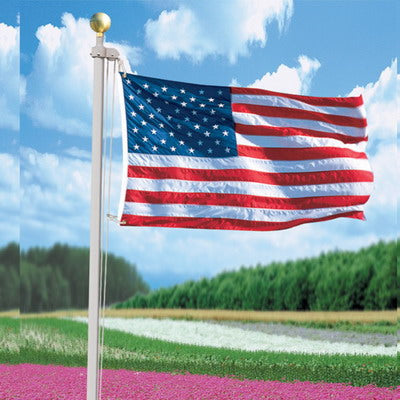 20' Aluminum Outdoor Flag Pole, 4 Pieces, 2" Diameter. Gold Top and Track for Rope and Toggle. Silver Colour