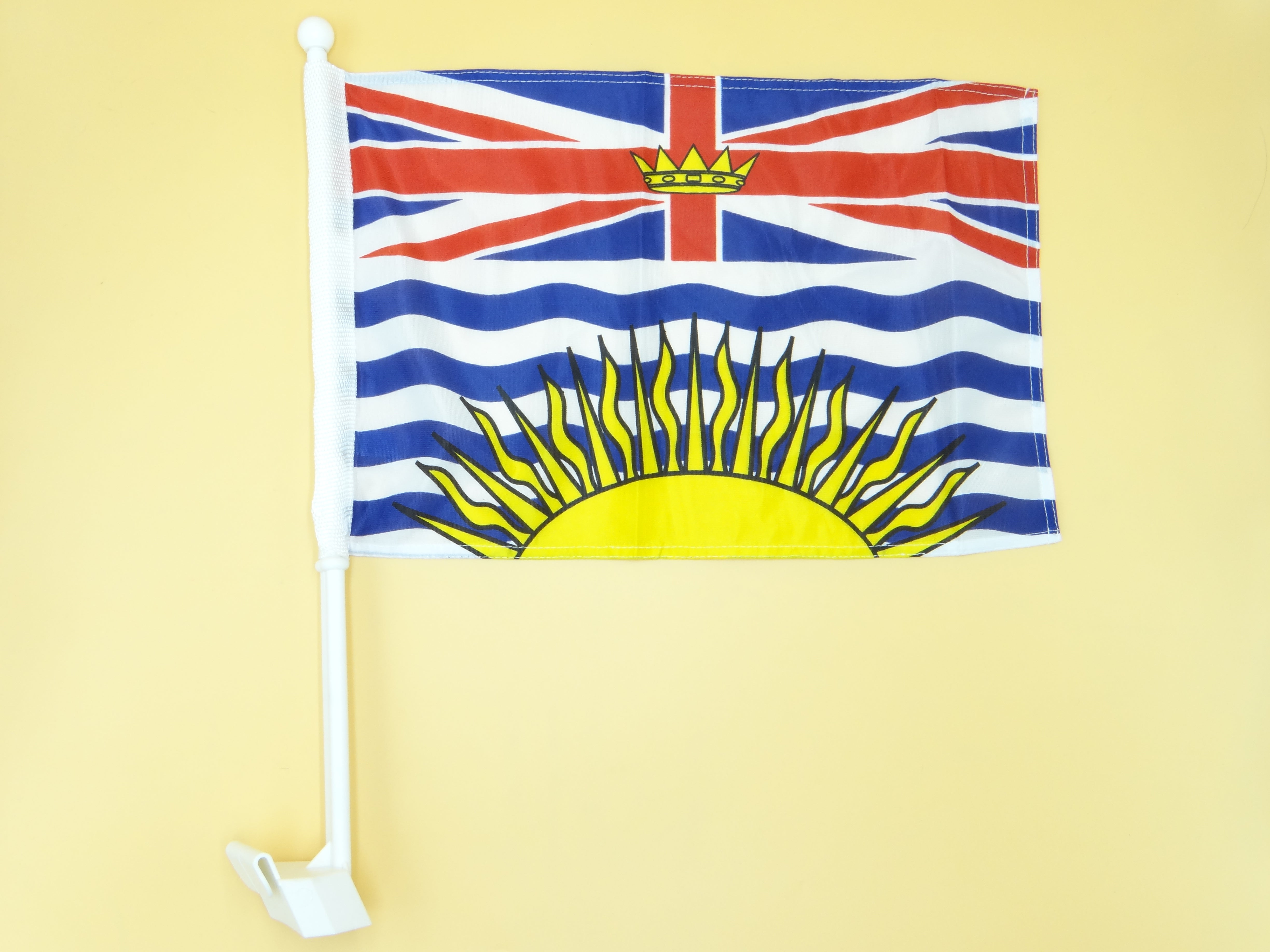 British Columbia 100% Polyester 12x18 inch Flag Come with Platic Pole, Pole can Attach to any car window.